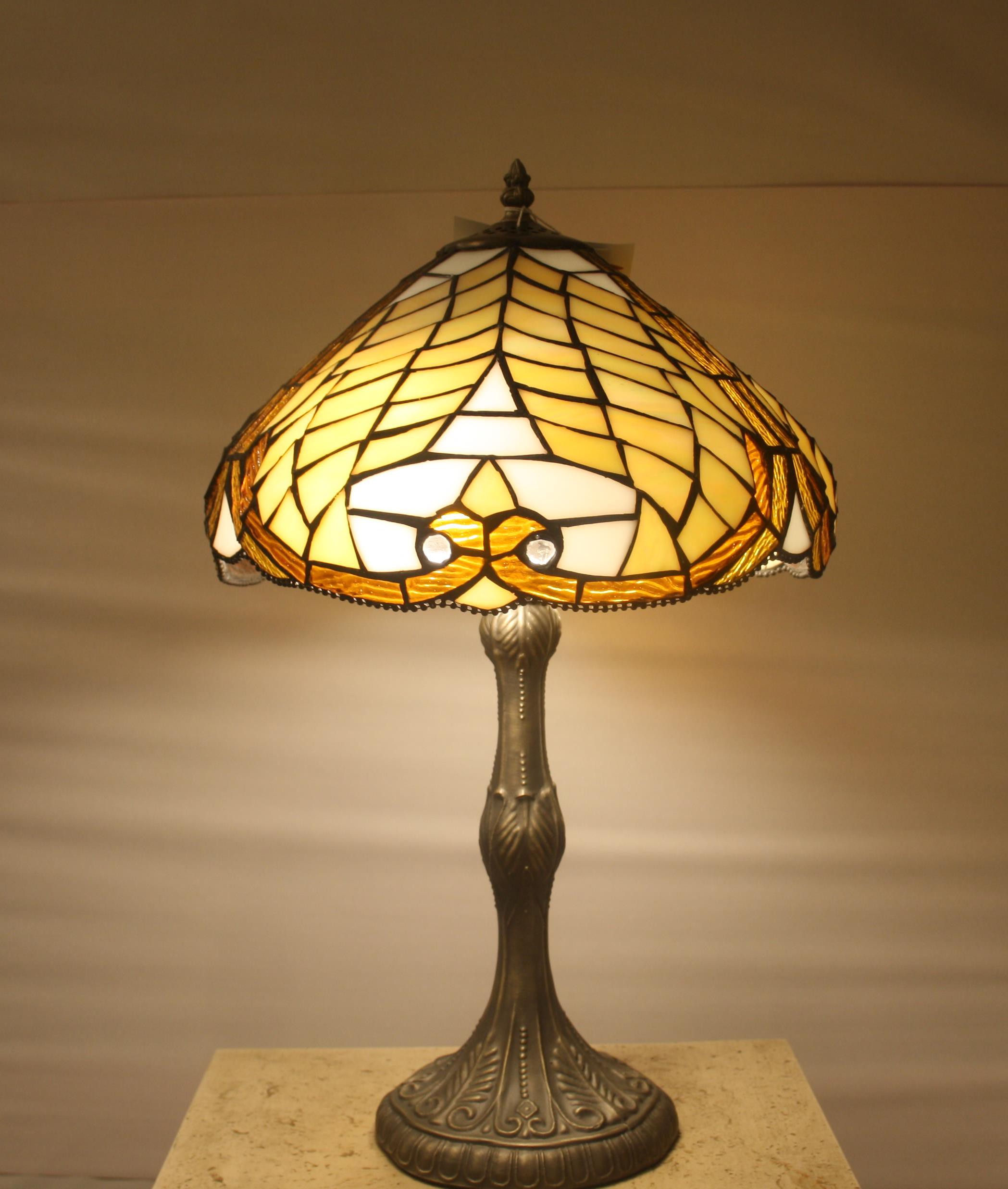LAMPARA TIFFANY DE SOBREMESA, HECHA A MANO CON OPALINAS ORIGINARIAS DE EE.UU EMPLOMADAS A MANO CON CERTIFICADO, PIE EN BRONCE